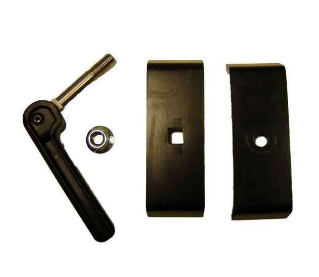 - Included is the long throw black plastic handle, the machined steel bolt, lock nut and roll pin and two wide plates.