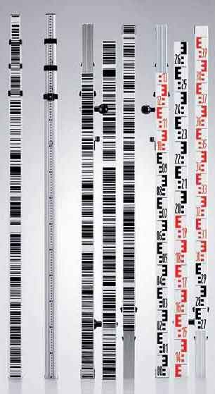 Four-section telescopic staff. Dual measuring faces with bar code and mm graduations. Incl. transport bag. Length 1.2 m (3.94 ft) to 4.0 m (13.12 ft), weight 1.8 kg (4.0 lb), coefficient of expansion 24 ppm/°C.