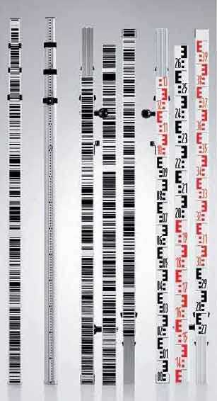 Four-section telescopic staff. Dual measuring faces with bar code and mm graduations. Incl. transport bag. Length 1.2 m (3.94 ft) to 4.0 m (13.12 ft), weight 2,2 kg (4.9 lb), coefficient of expansion 10 ppm/°C.