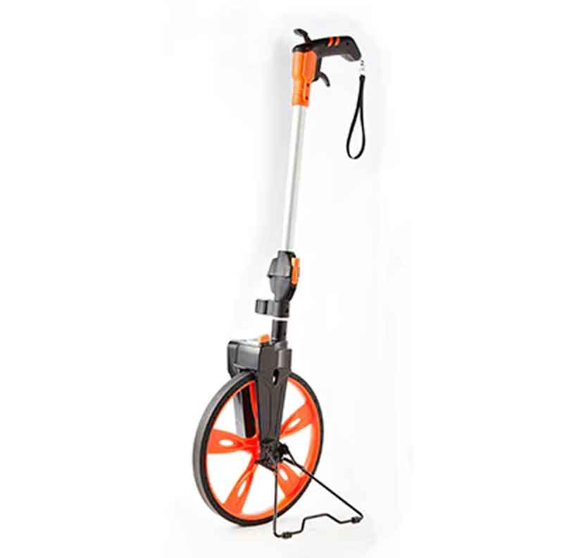 - Flip-down kickstand (3 foot size) — keeps the wheel upright when you need your hands free to perform other tasks and stays out of the way as you measure.