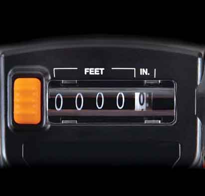 - Brake on pistol grip — stops counting instantly. Stop adding lengths accidentally by putting the brake on exactly when you need it.