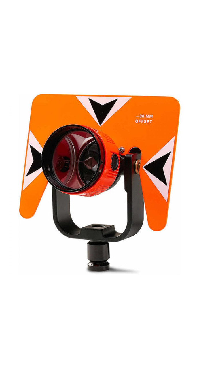 The Sokkia Strobe Prism Assembly 724100 works perfectly in low light conditions with its strobe prism. The prism has a 62 mm diameter and a 0/-40 mm offset with all its electrical cables tucked away inside a canister. Its strobe light operates for over 20 hours on just one CR-1/3N battery. This assembly includes a 5/8 x 11-inch thread and a fluorescent orange target with dimensions of 5.5 inches by 7 inches. It also has a single tilting mount with a bayonet base. And survey professionals can store this entire assembly away in the included protective carrying case.