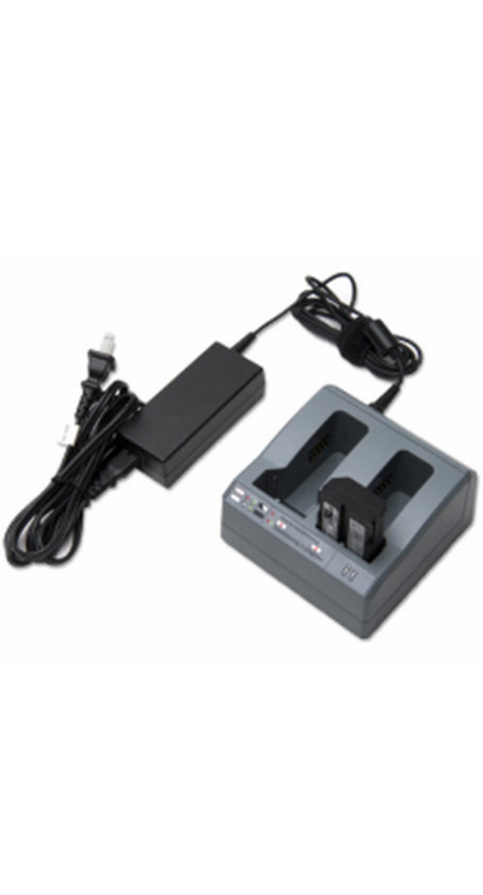 The Charger Kit Dual Slot Contains Charger dual-battery slot, Power supply for charger, and a Cable AC kit AC for power supply.