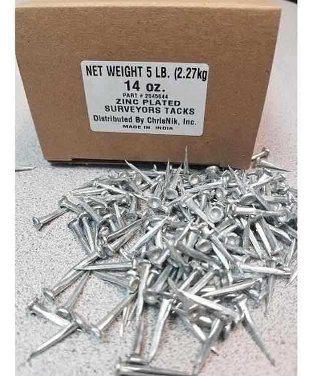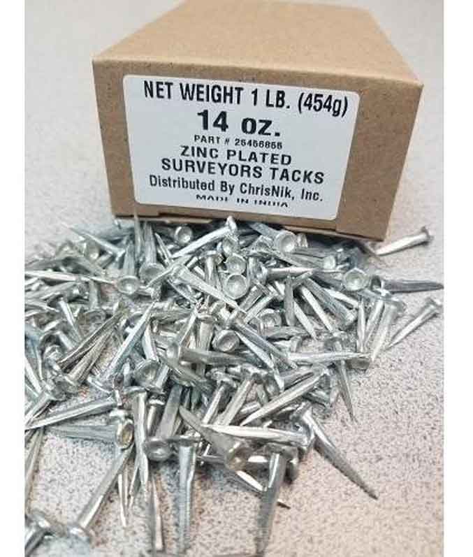 Zinc plated Stake Tacks feature indented heads to accurately guide your plumb bob to the right spot.